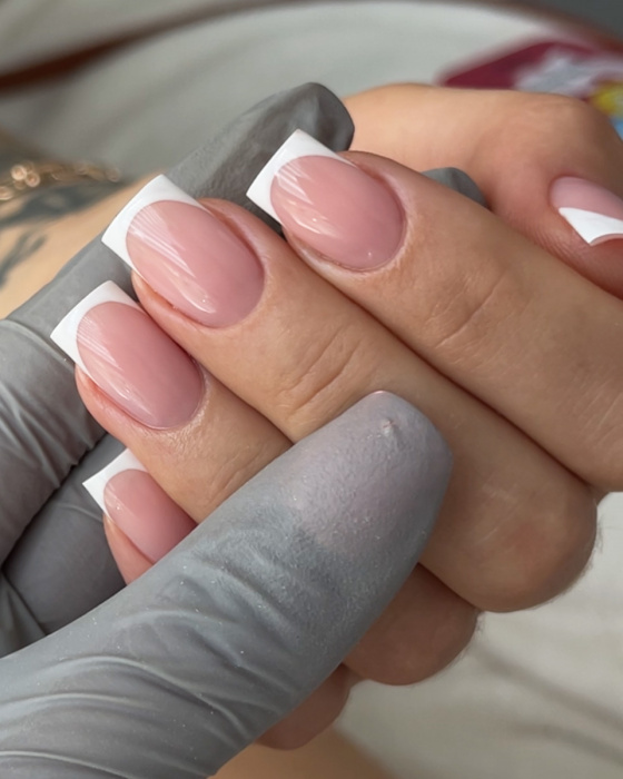 Ved forsterkning må den naturlige neglen files minst 1 mm fra innsiden for å unngå lifting fra frikanten;