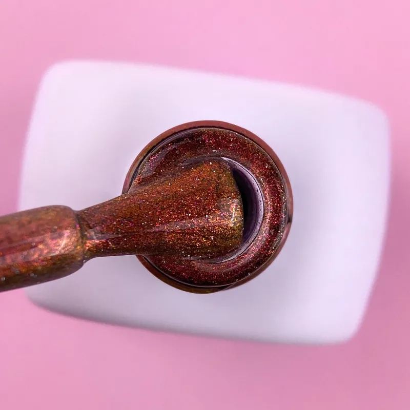 Cat Eye-gelélakk inneholder tusenvis av små metallpartikler som reagerer perfekt på magnetens påvirkning og skaper unike mønstre og sterke lysrefleksjoner på neglene. Takket være de multifasetterte reflekterende partiklene får lakken en magisk glans når lyset treffer den.