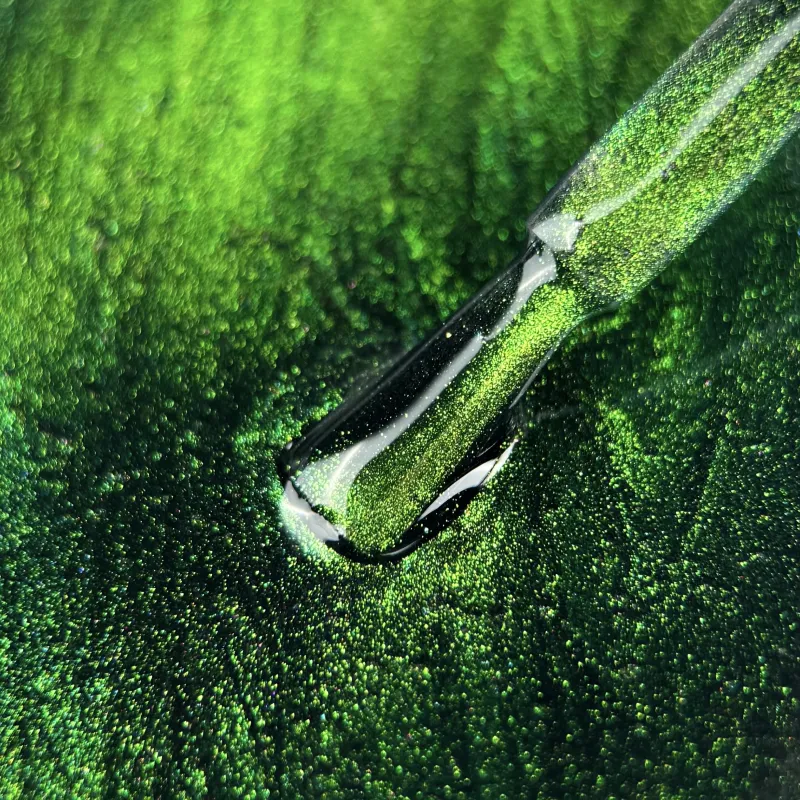 Produktets spesielle egenskap er innholdet av små metallpartikler. De reagerer perfekt på magnetens påvirkning og skaper en dyp, «magisk» glød allerede før herding.