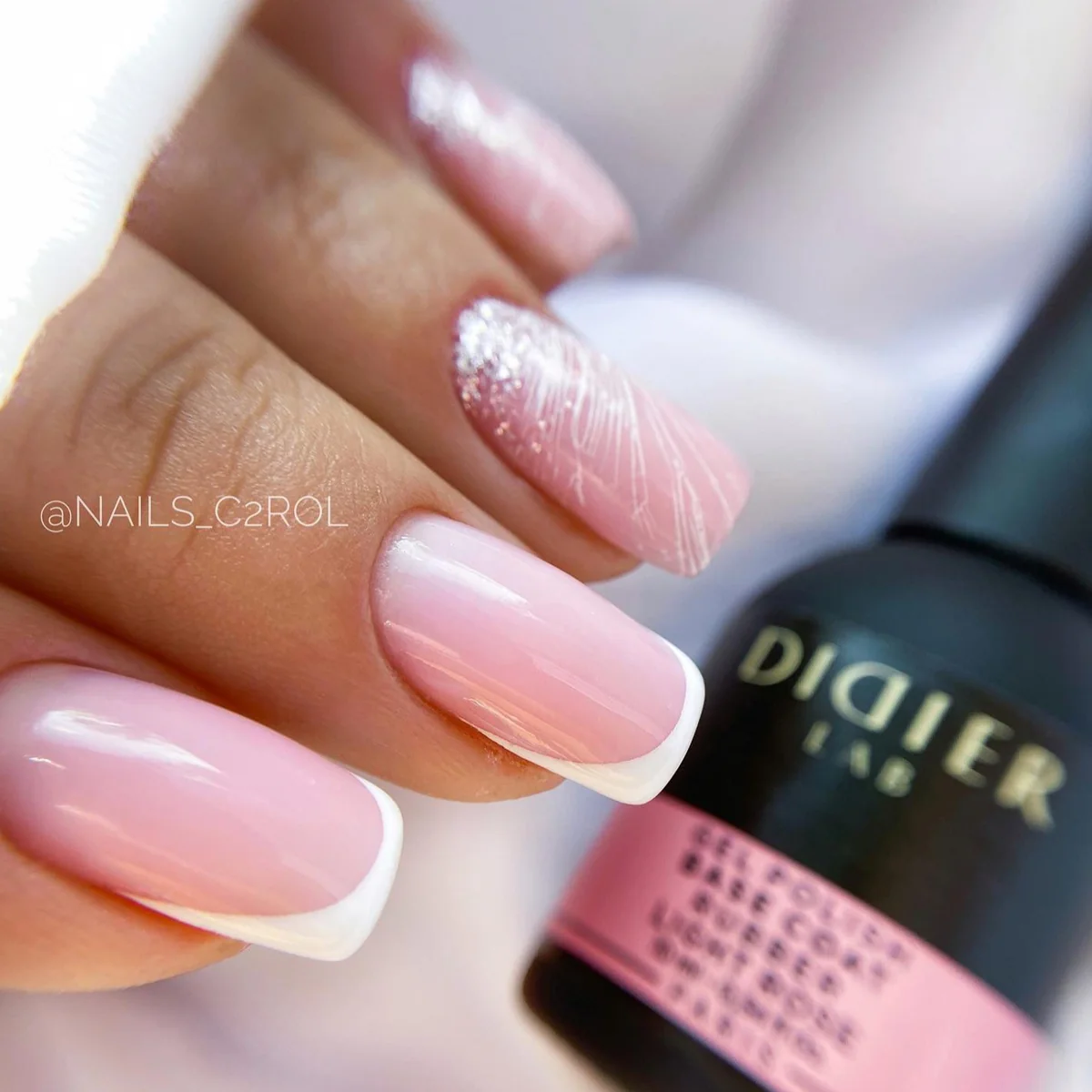1. Forbered neglens overflate nøye: gjør en hygienisk manikyr, ru opp negleoverflaten med Didier Lab Dehydrator, påfør Didier Lab Bond eller Didier Lab Acid Primer (velg produktet etter at du har inspisert klientens negleoverflate)